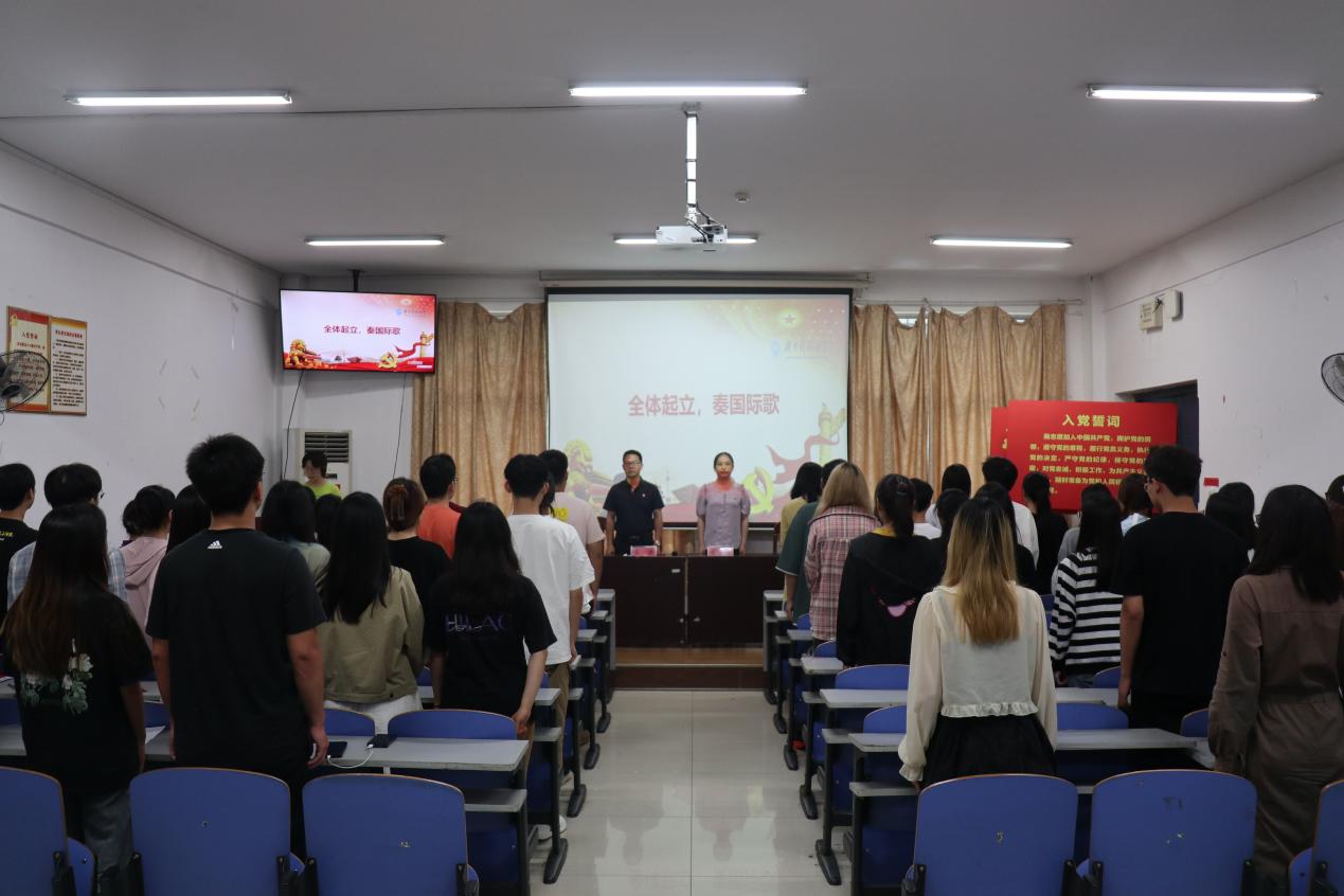 会议最后,全体起立,奏国际歌,宣誓仪式在庄严的国际歌声中拉下了帷幕。希望新发展的预备党员们能够做到严于律己,不断完善自我,肩负起时代的责任,牢记使命,为实现中华民族的伟大复兴而不懈努力。