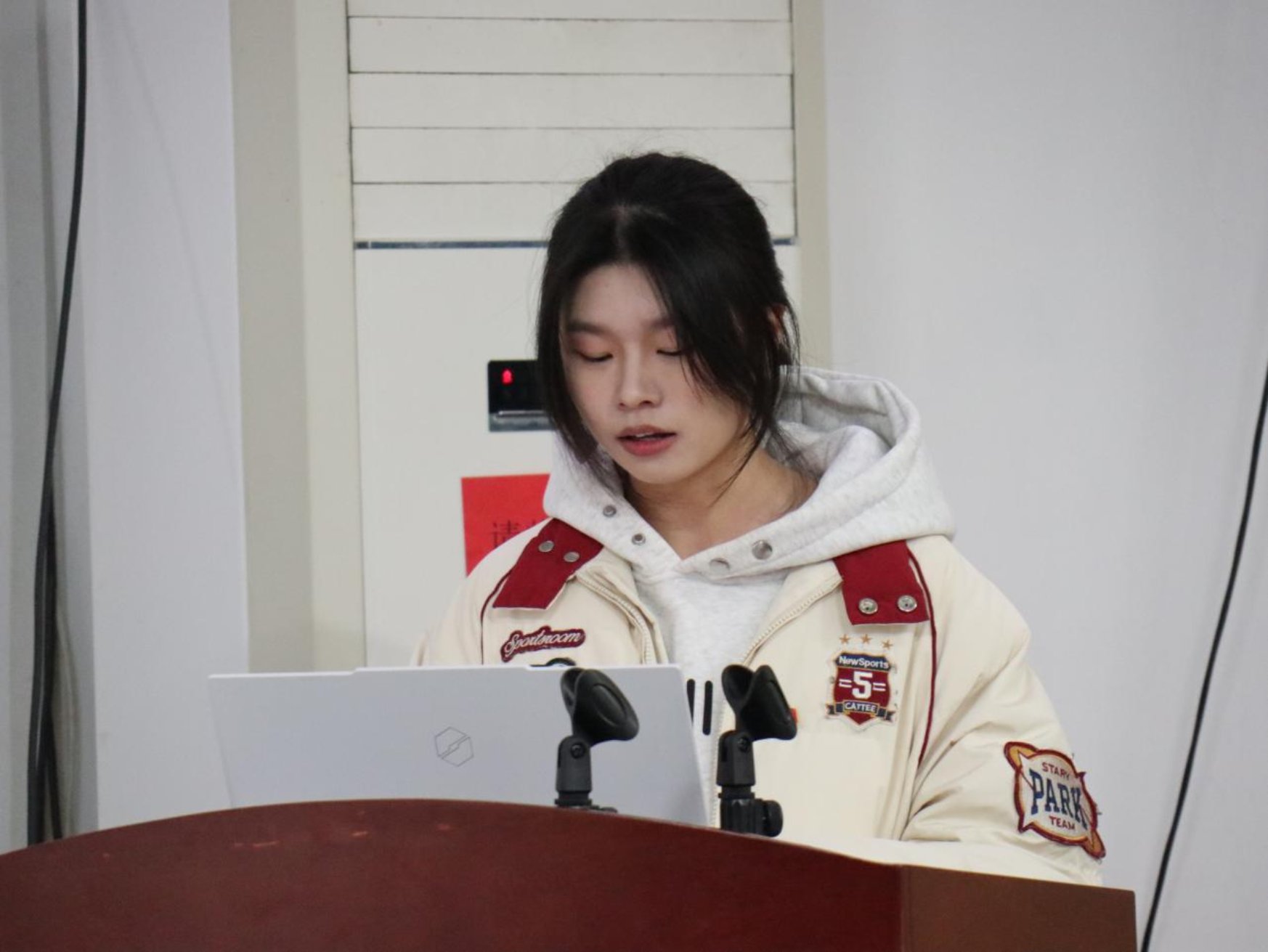 预备党员代表曹倩同志发言:“‘组织上入党一生一次,思想上入党一生一世’,这句箴言将时刻铭记于心。面对党旗庄严宣誓的那一刻,我们的人生轨迹从此刻下了红色印记,这既是一份光荣的加冕,更是一场责任的接力。”