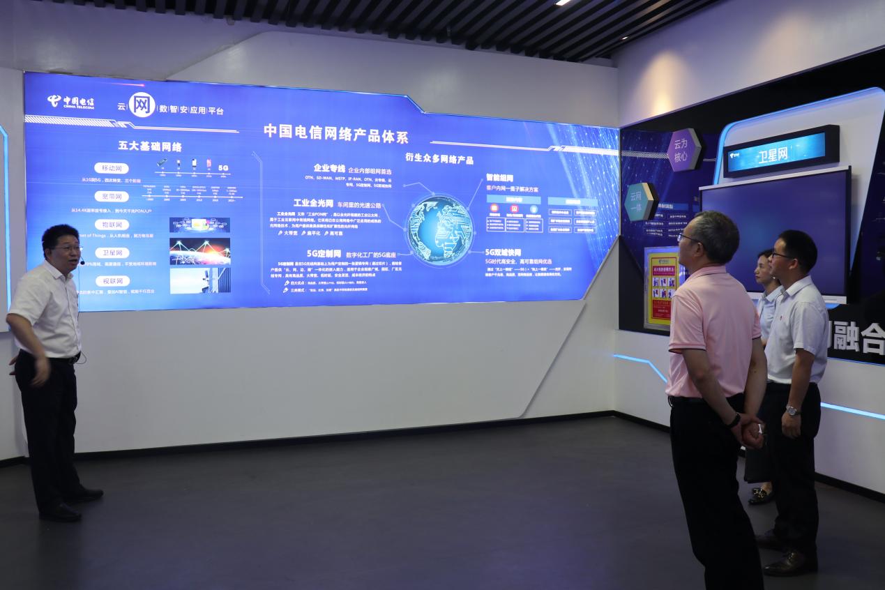 首先,参观云大数据中心展厅。中国电信湘潭分公司副总经理易高峰以公司业务涵盖5大基础网络——移动网、宽带网、物联网、视联网,7个数字能力板块——云、网、数、智、安、应用、平台为重点,介绍了中国电信湘潭分公司云大数据中心相关情况。