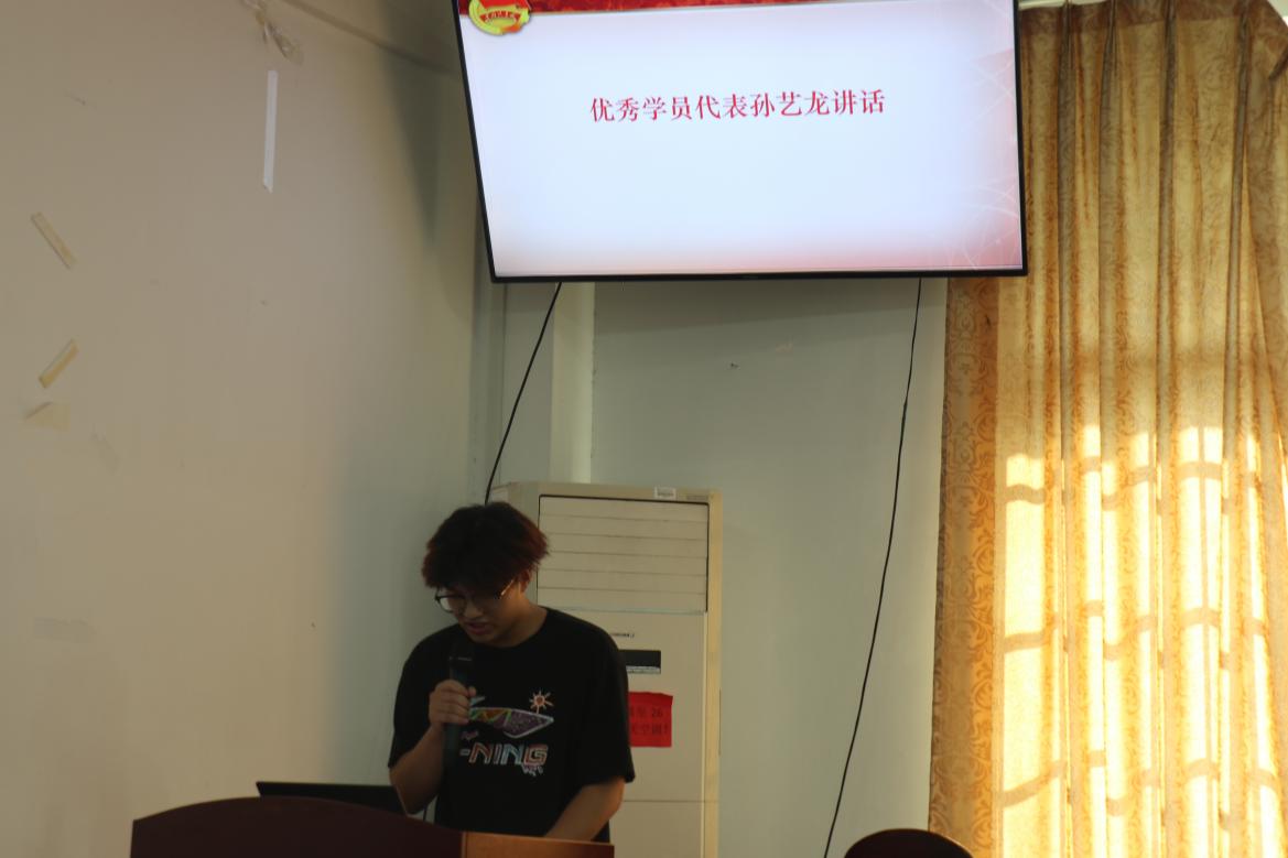 优秀学员代表孙艺龙同学上台发言,通过这次培训,他更加坚定了入党的决心。他说:“结业并不意味着结束,而是一个新的开始。我们将积极参加各种社会实践活动,锻炼自己的意志品质,增强自己的社会责任感。我们将时刻保持谦虚谨慎、不骄不躁的态度,虚心向身边的优秀党员学习,努力成为他们那样的人。”