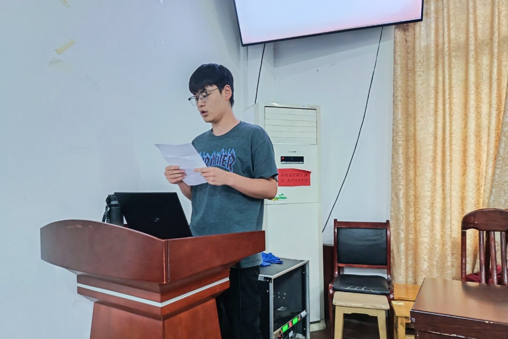 党员代表姚霁洲同志发言,他表示,我们要以实际行动践行入党誓言,做到心中有党、心中有民、心中有责。我们要用于担当,甘于奉献,以“红心向党志不移,青春逐梦谱华章”的信念,在实现中华民族伟大复兴的中国梦中贡献青春力量。