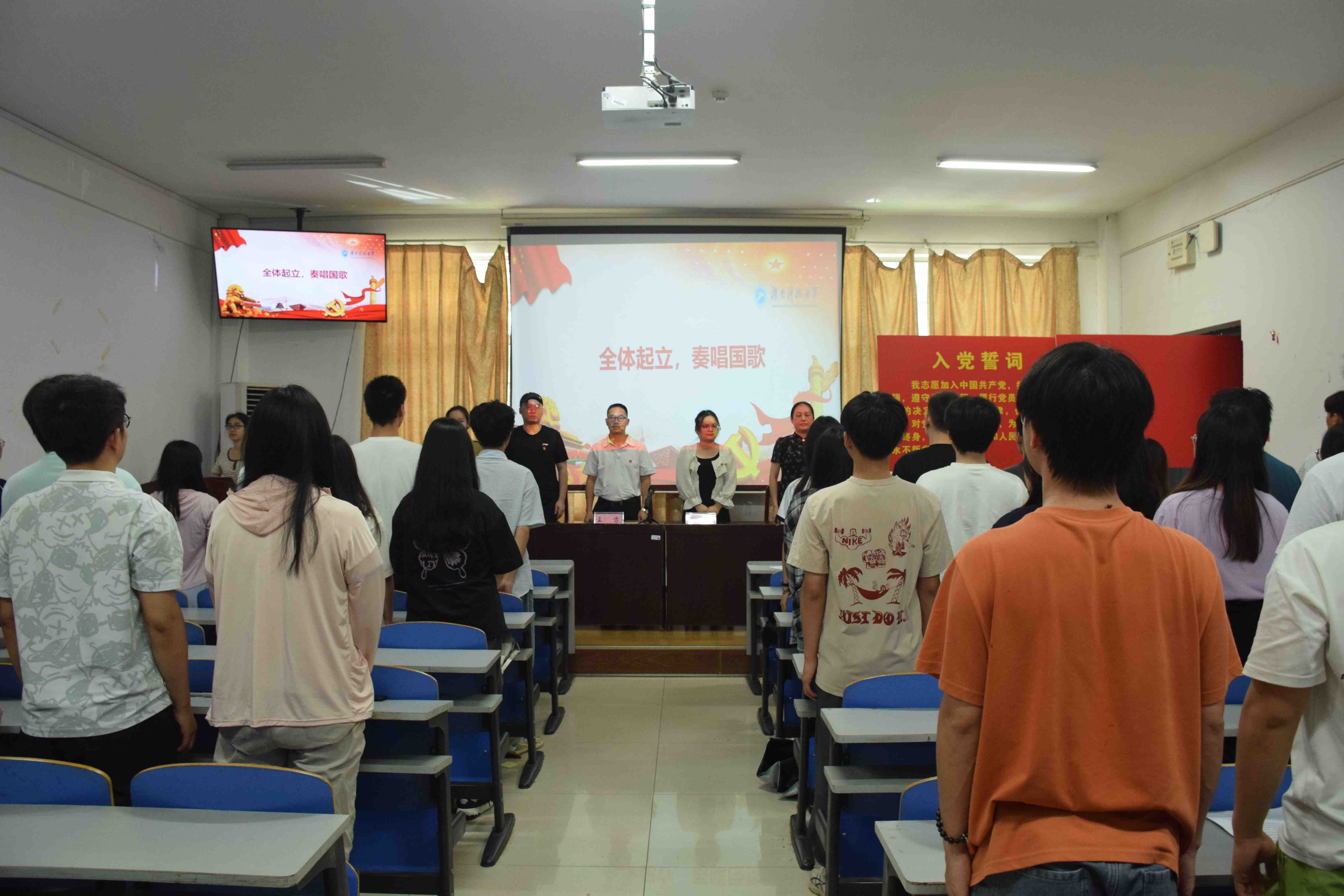 全体新发展预备党员面对鲜红的中国共产党党旗,举起右手握拳,庄严宣誓。铿锵有力的誓言在会议室内回荡,表达了新发展预备党员们对党的无限忠诚和为共产主义事业奋斗终身的坚定决心。
