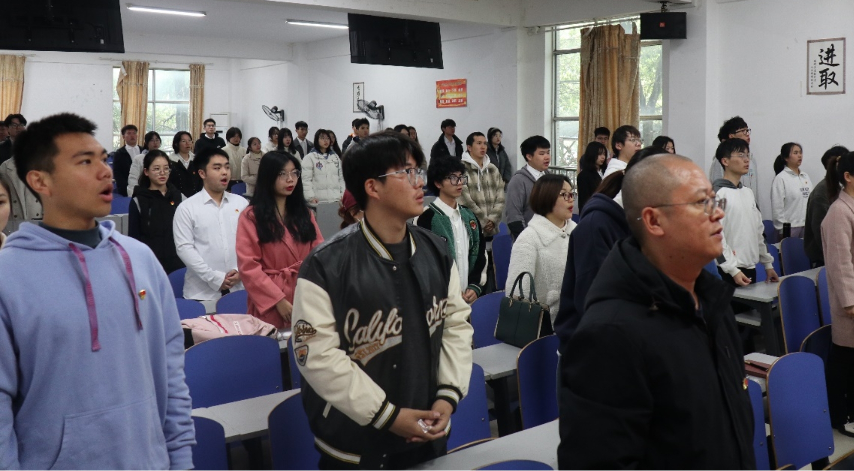 ▲全体起立,唱国际歌