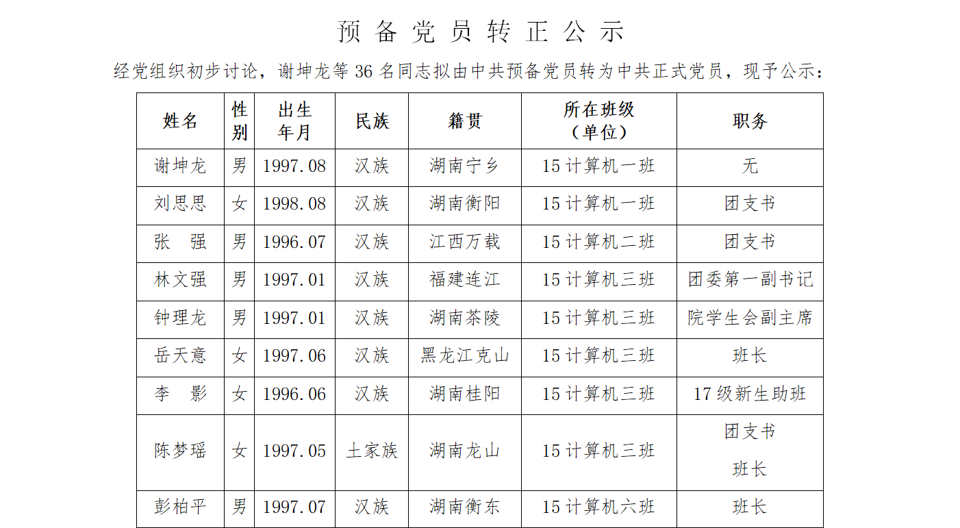 预备党员转正公示