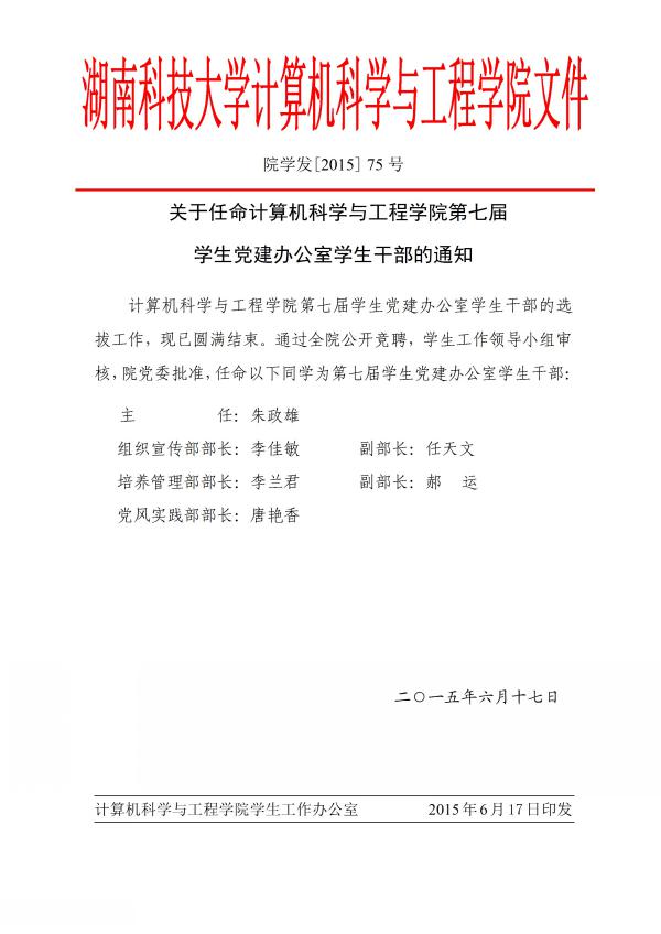 关于任命计算机公司第七届员工党建工作领导小组的通知