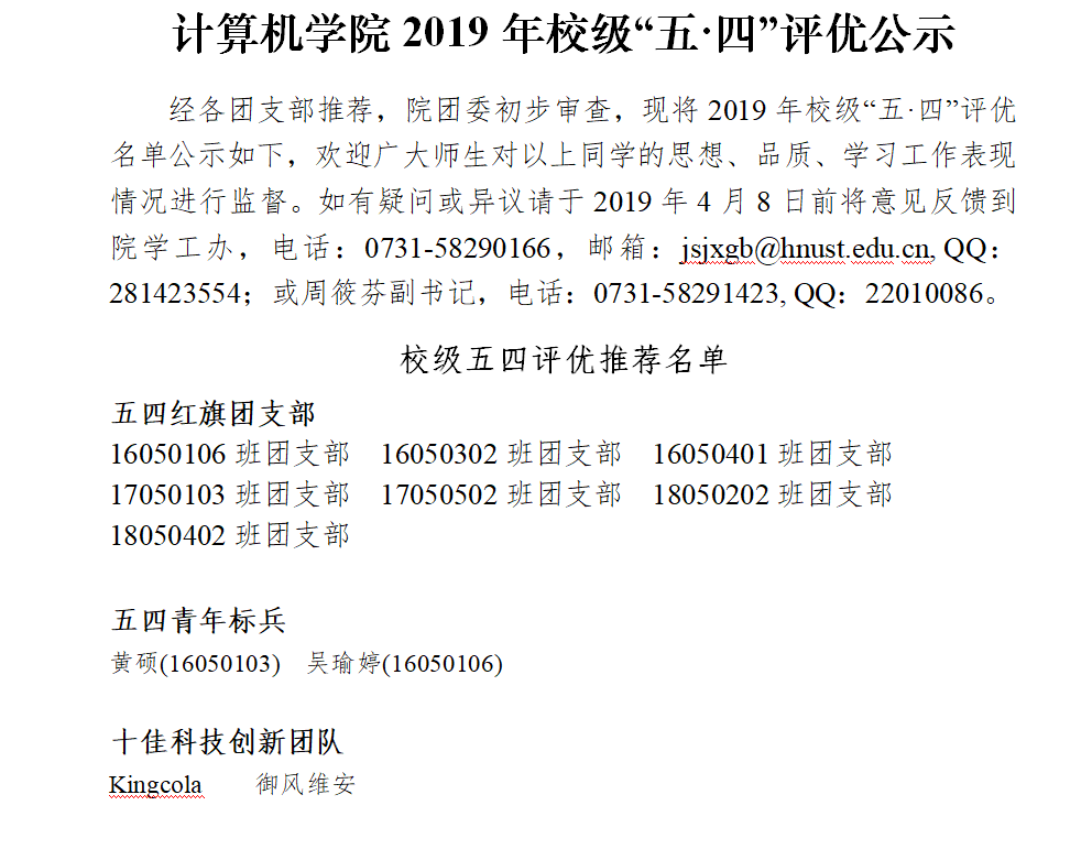 计算机公司2019年校级“五·四”评优公示