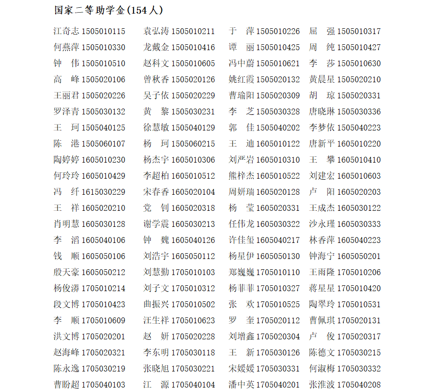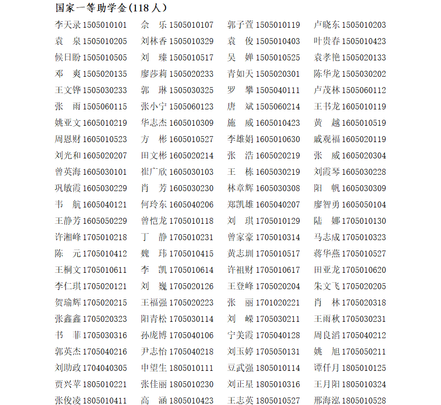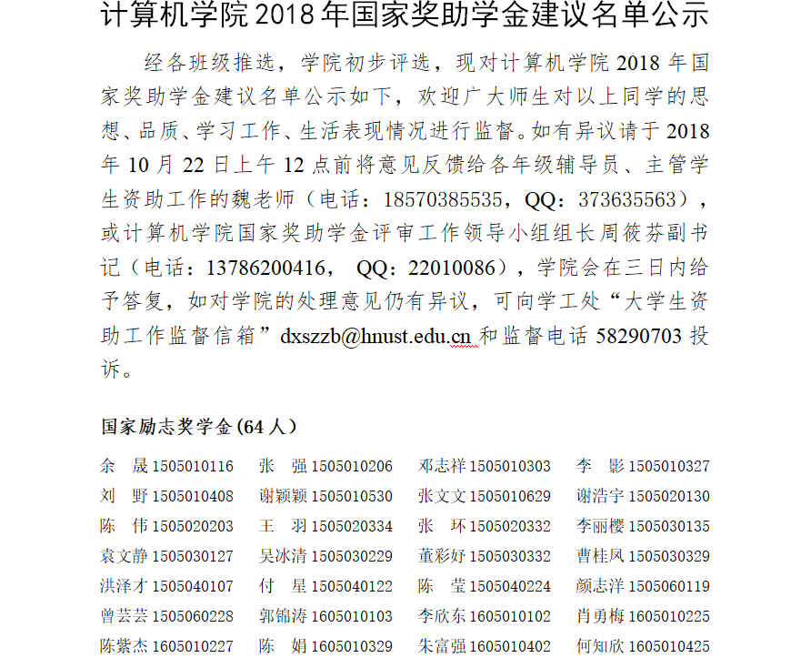 计算机公司2018年国家奖助学金建议名单公示