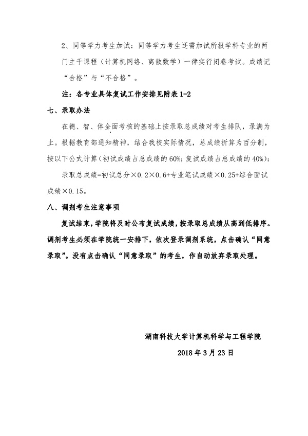 2018年硕士研究生复试录取工作方案