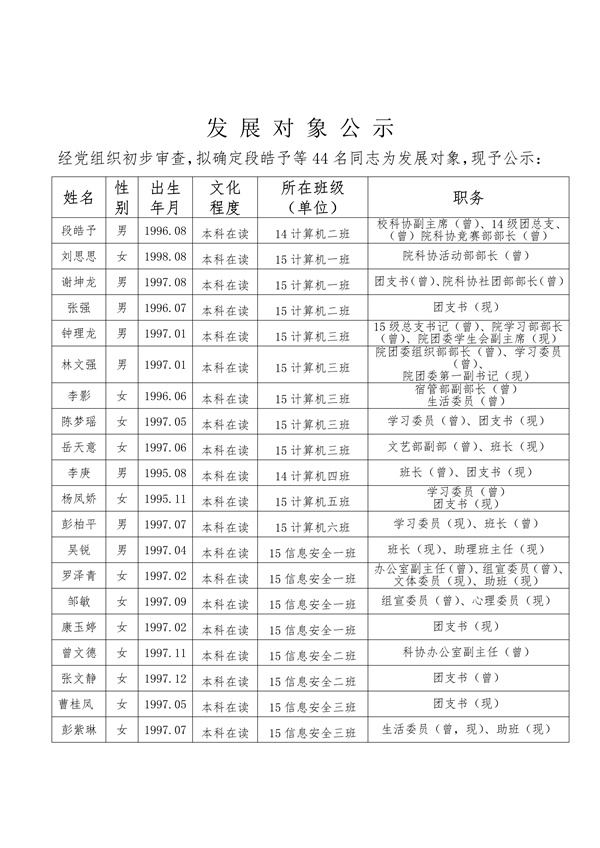 党员发展对象公示