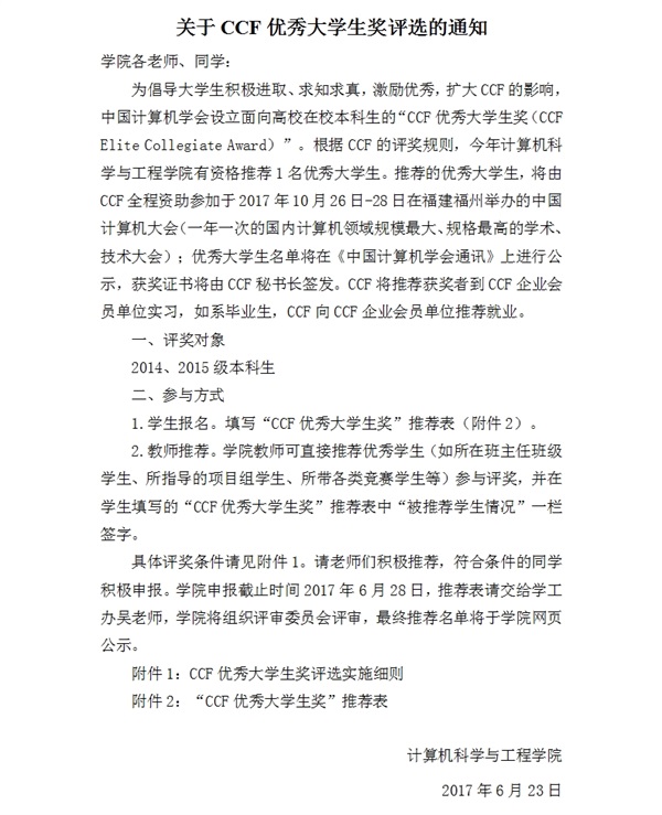 CCF优秀老员工奖评选通知
