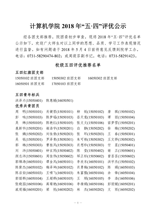 计算机公司2018年“五.四”评优公示