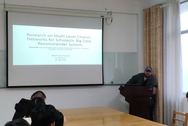 2019年3月8日上午10点,公司于逸夫楼209会议室举行了一场全英文学术交流报告会。会上公司特聘外籍讲师Karim Alinani作了题为“Research on Multi-Level Citation Networks for Scholastic Big Data Recommender System”的学术报告。公司刘建勋经理、部分教师和员工参加了本次的报告会。会议由公司副经理周栋主持。