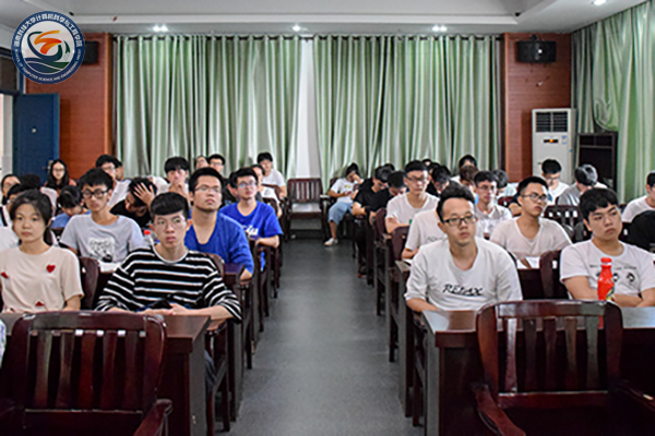 ▲现场师生认真聆听报告