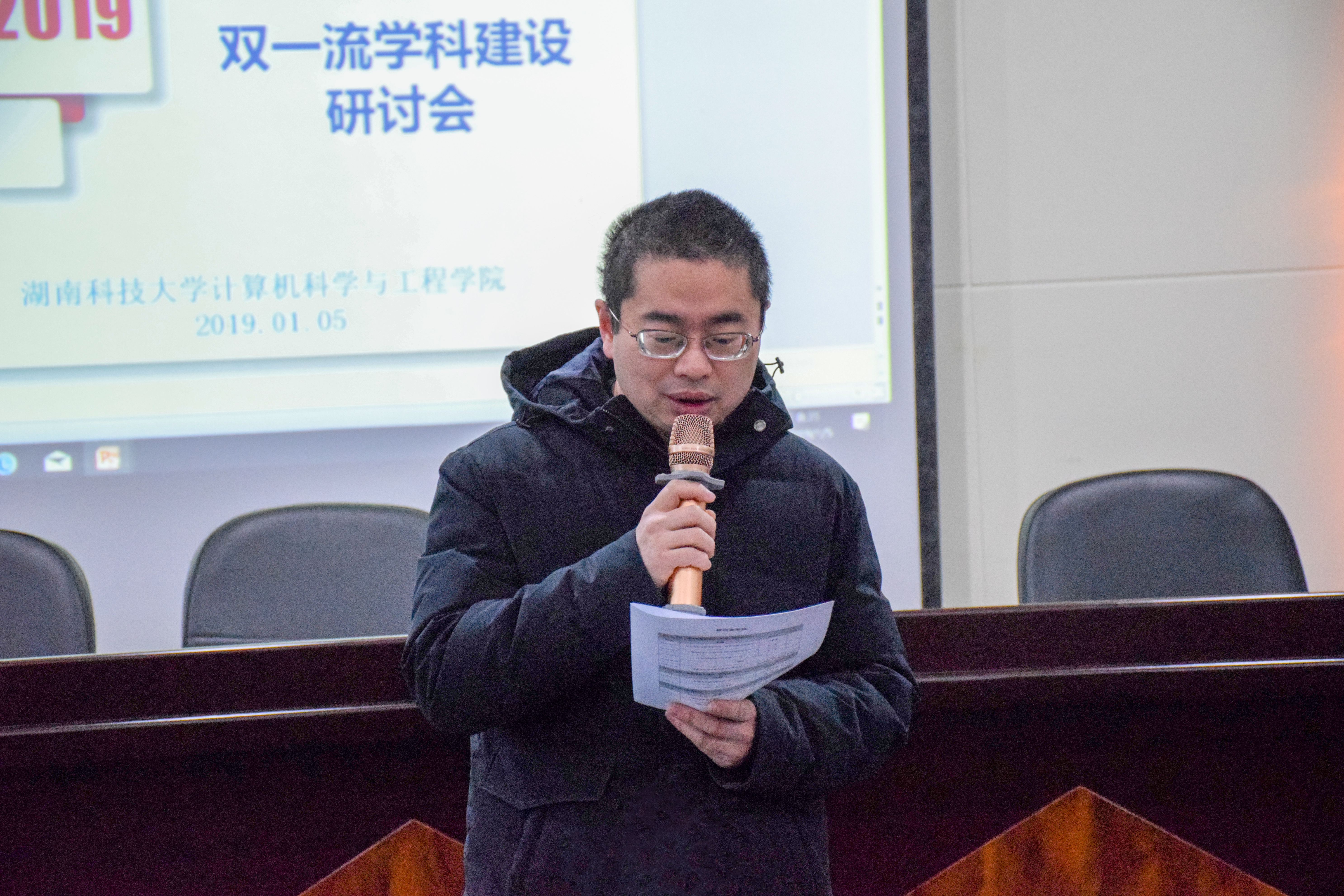 研讨会伊始,首先进行的是院内报告。周栋教授简要地介绍了本次研讨会的流程和主要内容。随后,刘建勋教授通过“地方高校计算机类省双一流团队建设的思考”为主题的报告拉开了本次研讨会的帷幕。他强调了国家双一流和省双一流建设的区别,表明公司此次双一流团队建设的总目标为一个体系和一个基础,并围绕此目标多角度地展现了公司目前建设双一流学科的优势与不足之处。同时,他希望公司能建立“风清气正”、“求真务实”的工作氛围,在未来的一年中能稳中求进,扎实做事。