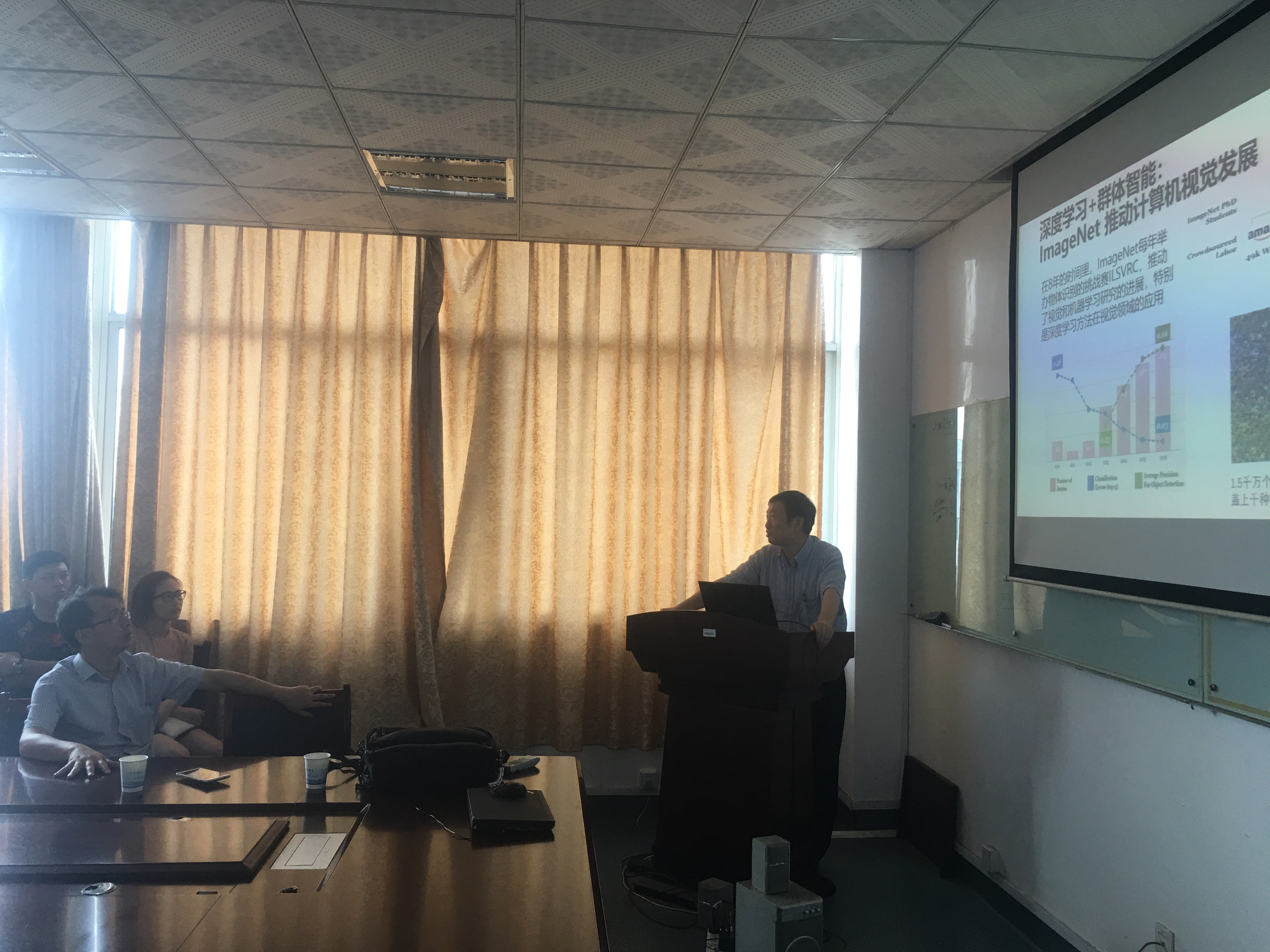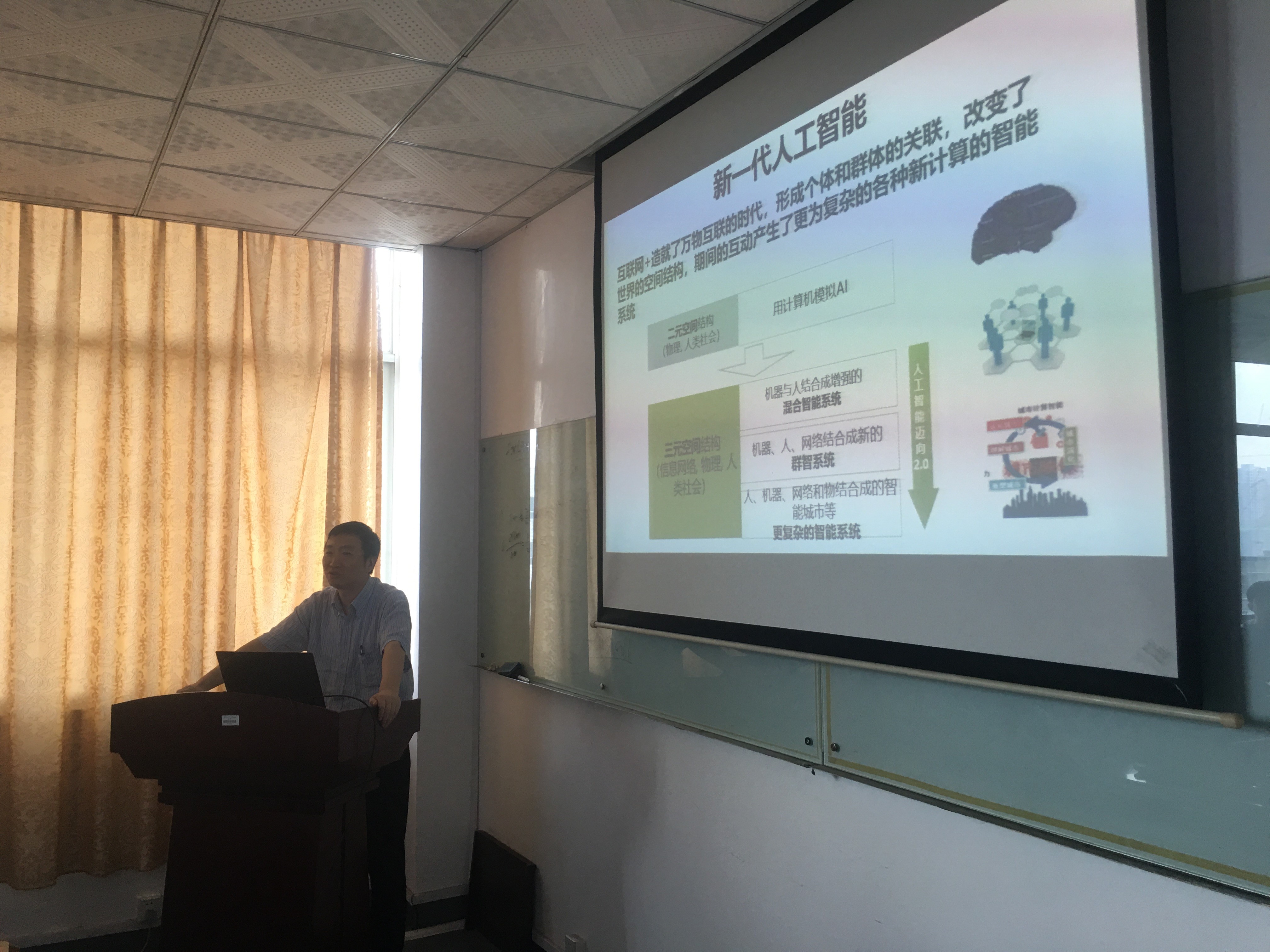 2018年6月17日(星期日)上午9:30,应公司邀请,北京航空航天大学教授、博士生导师吴文峻教授在yl23455永利集团逸夫楼641会议室做了一场题为“新一代人工智能时代的群体智能研究”的精彩学术报告。本次报告由公司经理刘建勋教授主持,公司部分老师、研究生及本科生参加了报告会。