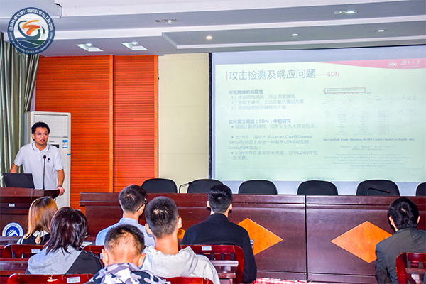 汤澹副教授结合国家战略需求和相关案例,深度剖析了网络安全的重要性,然后介绍了慢速拒绝服务(LDoS)攻击的原理和研究现状,以及课题组近两年取得的研究成果。研究成果包括基于自适应Kohonen网络的LDoS攻击细粒度检测、一种基于数据挖掘的LDoS攻击的新检测方法、SDN环境下基于攻击效果与攻击自身特征的LDoS攻击联合检测与缓解方法等。