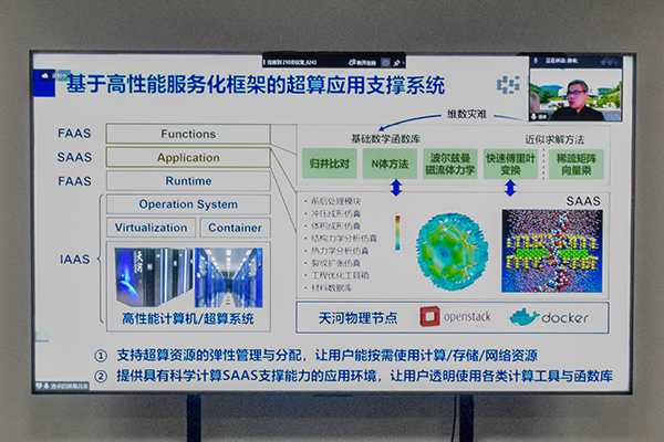 唐卓教授作了题为《高性能计算服务化:从算力网到AI融合计算》的学术报告。他首先以人工智能和大数据应用及高性能计算为切入点,逐步阐析目前实现服务化的现实背景以及所面临的挑战。如今人工智能已然进入算力时代,AI应用发展面临着高性能计算需求,HPC的不可解问题有望依托高性能AI解决,人工智能与高性能计算呈现融合发展的趋势。基于这些问题,他重点介绍了实现高性能计算服务化的关键技术以及超算云服务平台及整体架构。