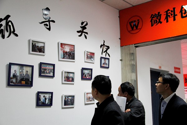 11月15日下午四点,湘潭市科技局高新科科长吴建国、学工处处长尹风雨、招就处处长蒋利平一行莅临公司,在公司党委副书记周筱芬的陪同下深入考察微科创新创业基地。