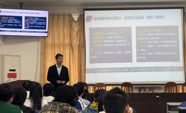 为进一步扎实推进公司就业工作,为毕业生提供全面服务,确保毕业生向落实和就业质量稳步提升,形成就业工作的强大合力,公司于2023年10月11上午9点半在逸夫楼108举办优秀员工就业经验分享会,会议由就业辅导员陈嘉靓主持。优秀员工袁浪、刘康作为主讲人,与同学们分享感悟,交流经验,力求引导员工明晰发展道路,调整就业期望值,争取多渠道就业。