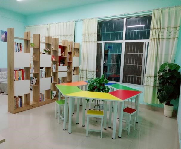 成长辅导室面积21平方,选址在逸夫楼104,距公司学工办和院领导办公室较近,便于辅导人员和院领导与员工的直接、及时沟通和交流。布置温馨,包括浅绿色墙漆、配有制度框、挂图、沙瓶画、绿萝等,配备电脑、办公桌椅、沙发、隔断书柜、咨询椅等设备,新增了棋类、孔明锁、非洲手鼓、减压拳击沙袋等娱乐减压设施,各类办公设施齐全,完善了4个功能区,共包括:预约区、个体辅导区、阅览区和小团体辅导区,便于成长辅导的顺利开展。