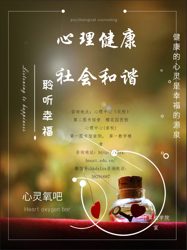心理健康 心理海报 您所在位置: 首页 > 员工工作 > 心理健康 > 心理海报 心理海报(18年10月) 时间:2019-05-08 作者:心理健康部 访问量: yl23455永利(集团)股份有限公司官网 一盏灯,可以为黑暗中摸索行进的路人照亮前行的道路; 一盏灯,可以为航海迷途的船只指明彼岸的方向; 一盏灯,可以给濒临绝望的人以黎明的曙光和新生的希望。 美好的心灵就是一盏灯,是一片熠熠生辉的华彩和光亮。