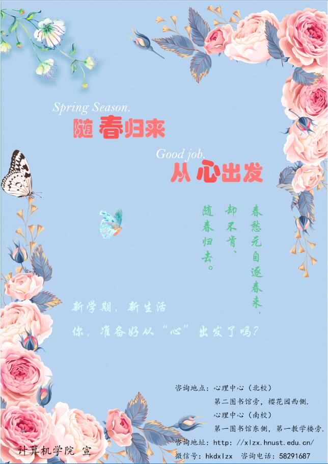 心理健康 心理海报 您所在位置: 首页 > 员工工作 > 心理健康 > 心理海报 心理海报(18年.3月) 时间:2018-03-19 作者:心理健康部 访问量: yl23455永利(集团)股份有限公司官网 随春归来 从心出发 跟随心理健康部的脚步 我们会找到更好的自己