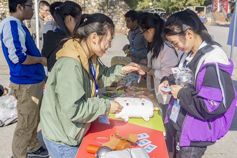 摆点当天正值骄阳,也正是炎炎烈日点燃了师生们参与活动的激情。此次摆点活动为了让同学们能从多方面认识自己,一共设置了“模仿达人、灵魂舞步、卡牌接力”三个游戏。活动伊始,周筱芬和陈苗苗身体力行,通过参与游戏拉近了与同学们心灵上的距离,也表现出了与平常不一样的风采。随后的环节,同学们的兴致逐渐高涨,游戏中各出奇招,只为展现出属于自己青春的无限活力。在模仿达人的游戏中,下腰、单手俯卧撑、公主抱等动作更是让同学们惊叹不已,现场欢呼声源源不断,气氛被持续推向高潮。最后,周筱芬对本次活动的成功举办表示肯定。她希望同学们能够不忘活动的初衷,从“心”开始健康成长。