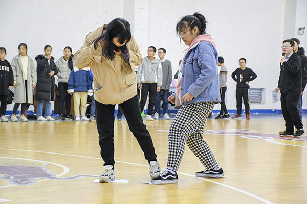 上午8点45分,由主持人致开场白并宣布本次活动正式拉开帷幕。上午的活动共设“黄金100秒”、“团队初建立”、“齐心协力向前冲”、“谁是戏精”以及“跳绳接力赛”五个项目。首先开始的“黄金100秒”打开了所有参与人员的心扉,消除了初识的陌生。在进行自我介绍时,各部门委员各显神通,尽情展现自我,赢得一阵阵热烈的掌声。紧接着的各个环节,每队的队员都全情投入、众志成城,“团队初建立”的广思集益、“齐心协力向前冲”的默契配合、“谁是戏精”的逼真演技、“跳绳接力赛”的敏捷身手,这其中无一不体现出团结二字的意义。