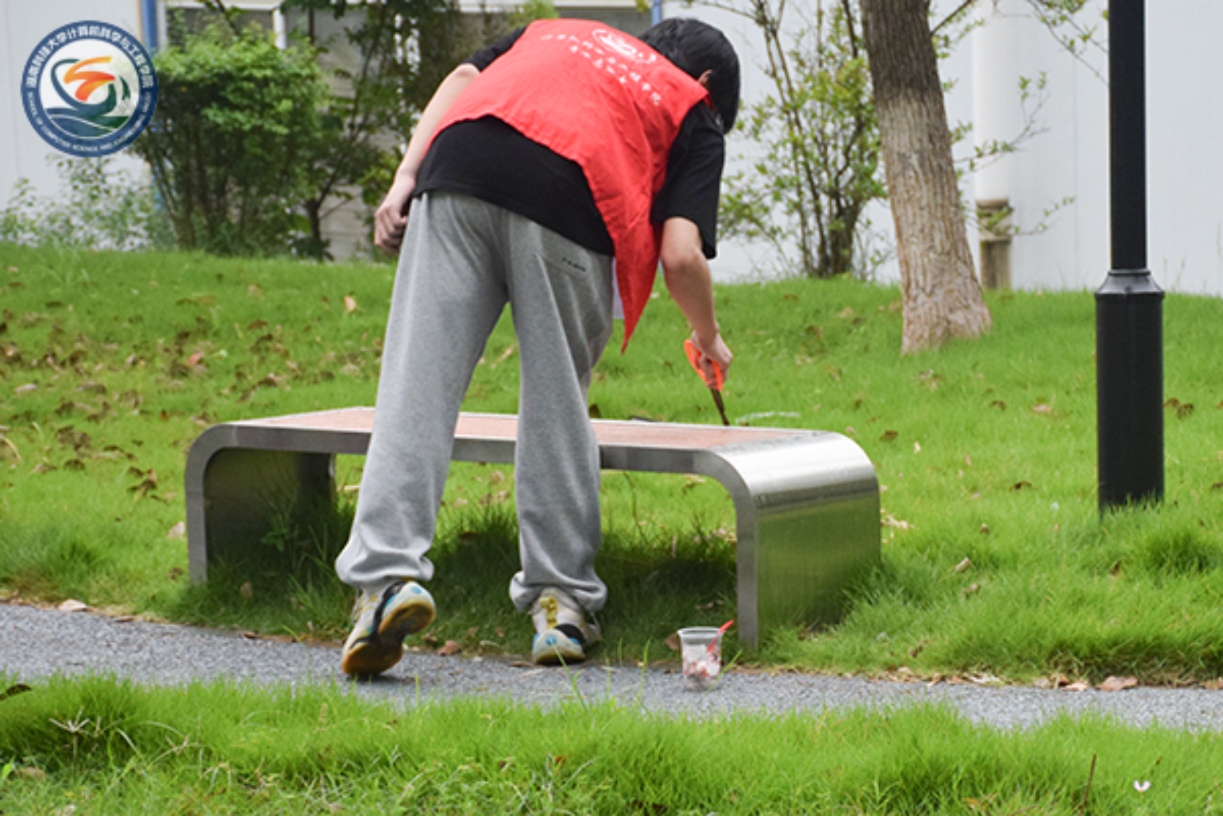 活动进行当天,青年志愿者分会的委员们在逸夫楼集合完毕,在清点好卫生清扫工具后,前往石榴园开展清扫工作,绵绵细雨也无法淡化委员们心中对保护校园环境的热情。
