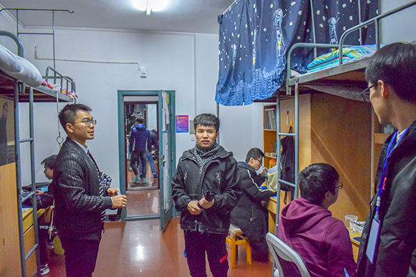 为营造一个安全稳定的育人环境,消除员工宿舍内各种安全隐患,规范员工宿舍用电行为,12月3日晚上9点30分,公司学工办副主任肖爱军,辅导员魏庆龄、袁东统、郭喆带领公司团委员工会主席团成员走进员工宿舍,对宿舍违禁电器进行全面检查。