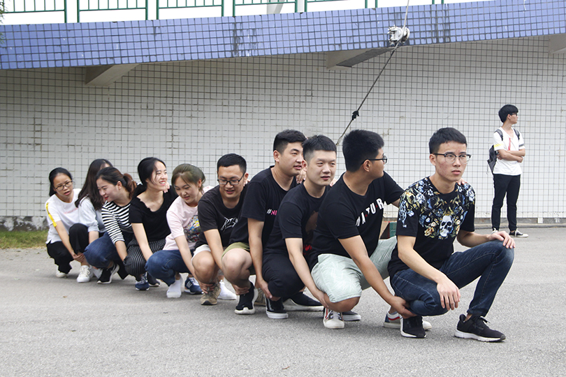 在明媚阳光的照耀下,教练首先与各位新生约法三章,新生们也积极地宣誓着,并对接下来的活动充满期待。随后,教练带领着同学们进行“团队破冰”环节,在其中“教官说”、“阿水的故事”等游戏中,同学们积极参与,现场气氛热烈。虽然也有人因游戏失败而接受惩罚,但他们并不怯场,为在场的同学们带来了欢乐,轻松愉快的游戏一下子就拉近了新生间的距离,真正地做到了“破冰”。紧接着开始了“团队建设”项目,全体新生被随机分为4个小组,选出自己的团队进行组团分建,新生们也都积极地为团队出谋划策,在经过充分的了解和准备之后,每个团队都为大家带来了精彩的队旗、口号、队歌及阵型展示,充分地消除了大家的隔阂,展现了团队协作精神。在接下来的“团队竞技”中,同学们进行了“挑战120s”和“达芬奇密码”两个游戏,队员默契配合,齐心协力,每个小队都成功地完成了任务,真诚的笑容在每个队员的脸上洋溢着。