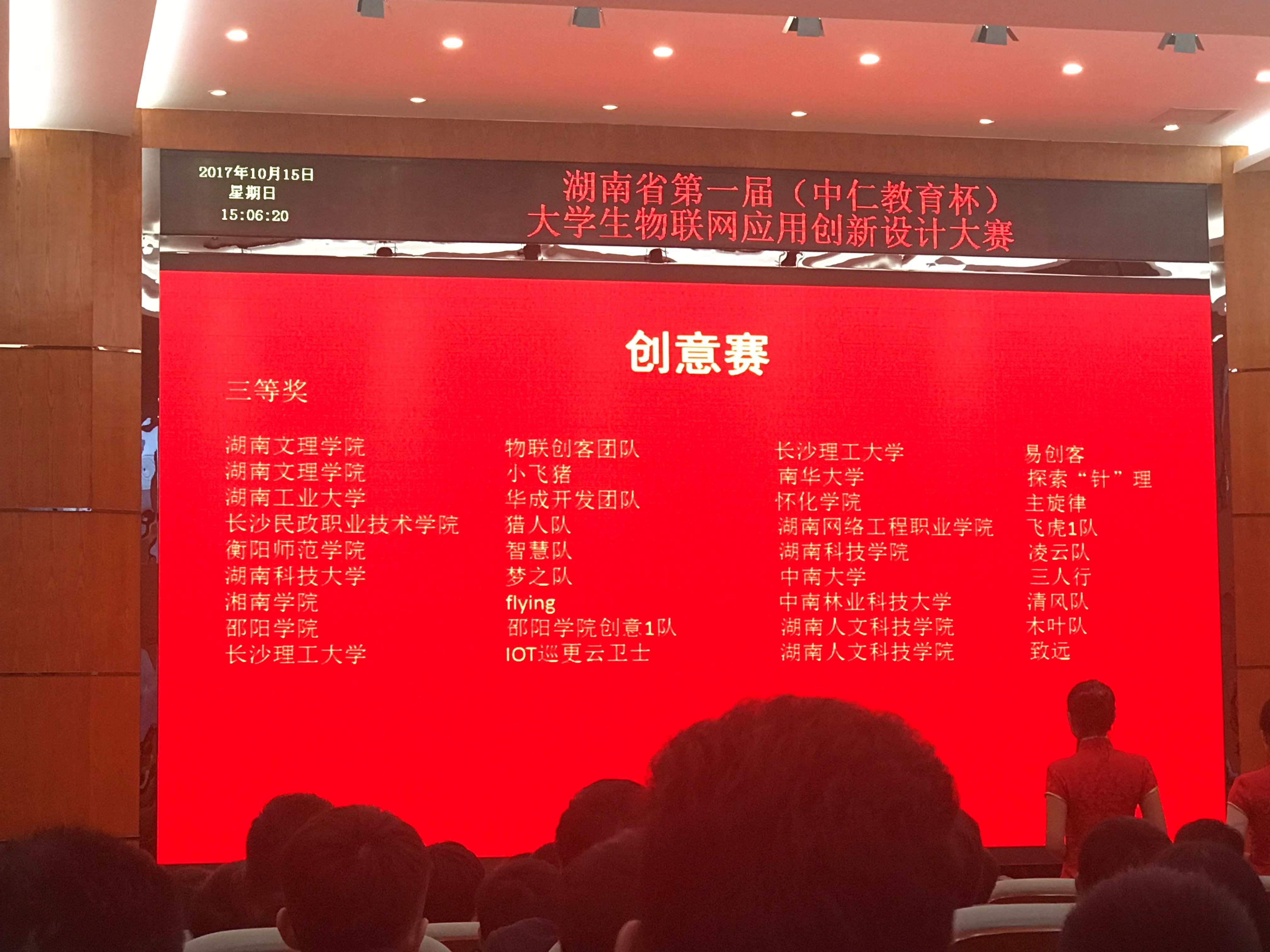 10月15日下午,“中仁教育杯”湖南第一届老员工物联网应用创新设计大赛暨第一届物联网应用创新设计大赛颁奖仪式于中南大学举行,公司两支创新团队获奖。