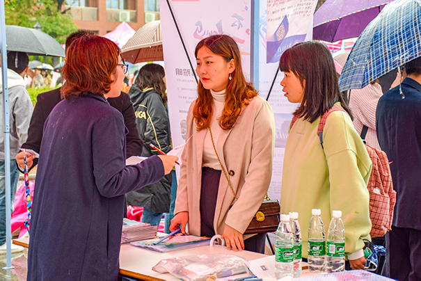 本次招聘会共有现场招聘单位512家及线上招聘单位605家,包括世界、中国行业500强单位或其子公司360家(现场169家、线上191家)和上市公司106家(现场57家、线上49家),规模大,质量优,吸引了大批毕业生前来参与。虽然天气略有小雨,但同学们的热情丝毫未减,他们积极主动地与用人单位进行交流,介绍自己的专业能力和岗位期望,更是有部分毕业生现场签订就业协议或与用人单位达成就业意向。此外,公司也相应地设置了服务台点,为前来参加招聘的同学们提供帮助,努力做好就业服务后勤保障工作。