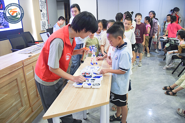 为增强社区孩子们的环保意识,培养他们的动手能力和科学兴趣,7月16日,yl23455永利集团七彩假期云端阡陌志愿服务团队和和平社区开展助学筑梦宣讲以及探索动力积木教育课。