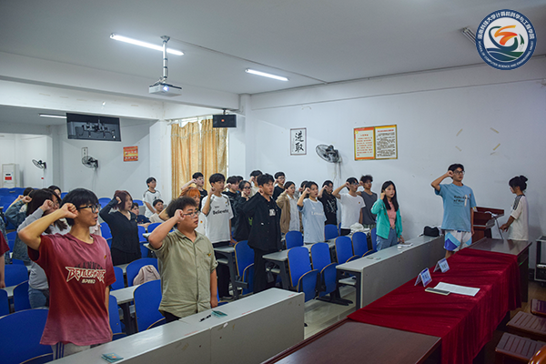 仪式在庄严肃穆的国歌声中拉开帷幕,全体人员肃立齐唱国歌。汪雯宣读新发展团员名单,李雄彪、李健宇为新团员颁发团员证和团徽。在团员代表何家珲的带领下,全体团员面向团旗庄严宣誓。随后,汪雯为新发展团员讲解共青团团史和团情,激励大家以实际行动践行入团誓言。