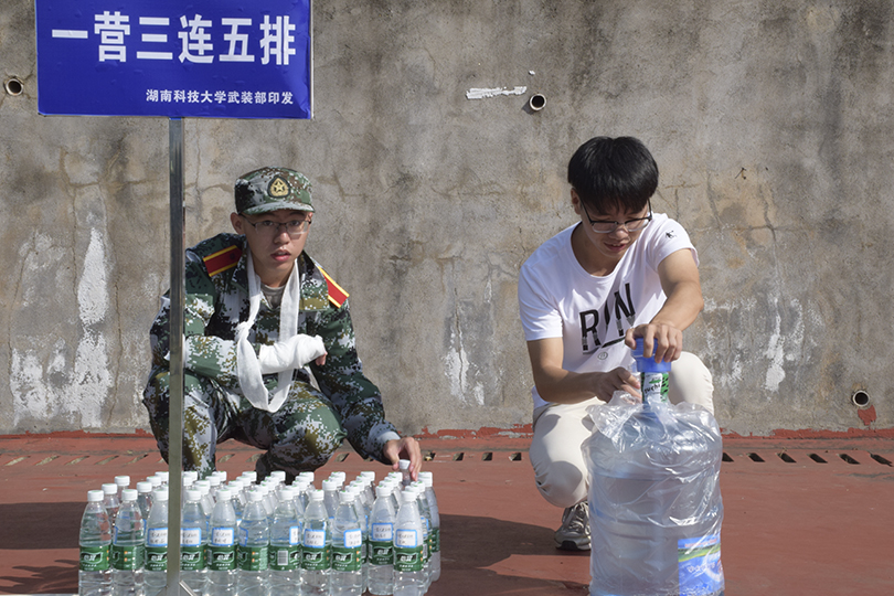 “不放弃,要坚强”是他们心中所念,“不偷懒,要贡献”是他们心头所想。即使背负着伤病,他们也仍想献出自己的一份力量。在训练场地里,我们不仅可以看到方阵中无畏前行,挥洒汗水的受训新生们,也可以看到角落里默默奉献的另一抹绿。“没事的时候帮他们拎拎包、倒倒水,做一些力所能及的事也算是在训练场上的一种证明吧。穿上这身军装,就得为其增添光彩。”计算机科学与技术四班的王天助看着手中的书,嘴角的笑容格外灿烂。