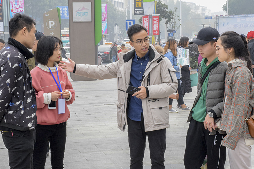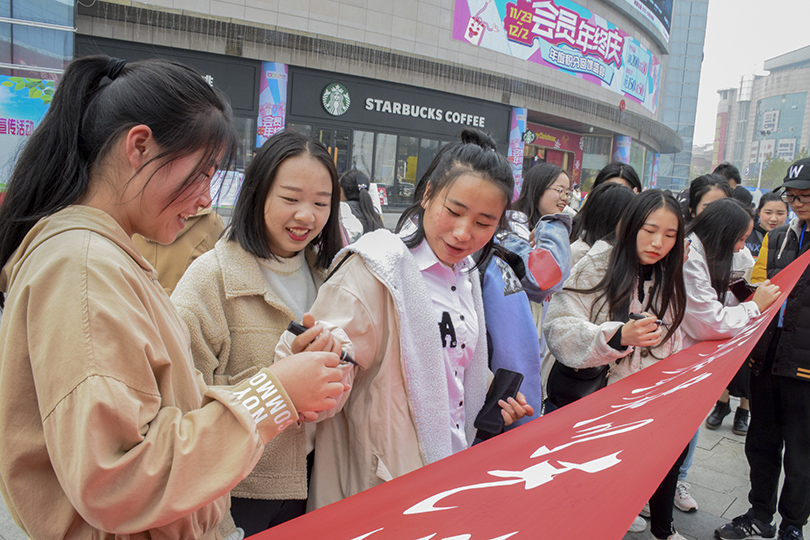 寒风飒飒冷彻骨,但衣着单薄的志愿者们并没有熄灭心中的热情。活动伊始,公司权益保障部的委员们分为两个小队,在华隆广场分两路向过路的市民们宣传艾滋病知识。同时,志愿者装扮成艾滋病患者,举着“能给我一个拥抱吗”的牌子向市民们索求拥抱。起初,过往的行人纷纷驻足观望,但并没有人敢于走上去和他们互动或者交流。直到一位王姓女士带着她尚在学步的孩子打破了僵局,她上前大大方方地给了志愿者们一个拥抱,还让孩子将手中的红丝巾递给了志愿者。“我知道拥抱和握手都不会传染艾滋病,一个小小的拥抱就能帮助和鼓励他人,我很乐意这样做。”王女士指着横幅说道,“而且我们不应该歧视艾滋病患者,因为足够有爱才能足以无艾。”看到这幅暖心的画面后,市民们陆陆续续地上前主动拥抱志愿者,并在横幅上签下了自己的名字,一份份小小的关怀,不仅温暖了在场的志愿者们,更体现了社会各界人士对艾滋病患者们的那份浓浓关爱之情。