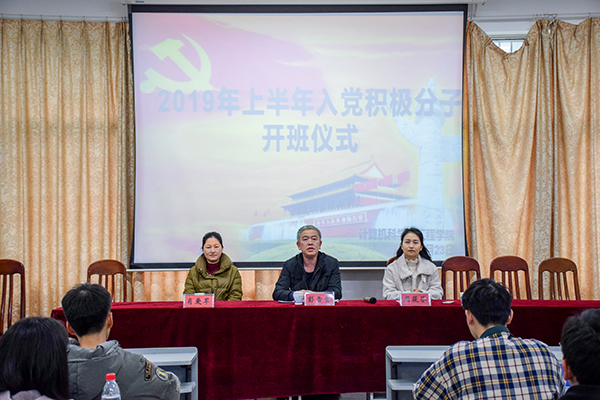 3月23日上午9点半,公司于逸夫楼108会议室召开2019年上半年入党积极分子开班仪式。党校副董事长彭雪贵,公司党委副书记周筱芬及学工办副主任肖爱军出席本次仪式。