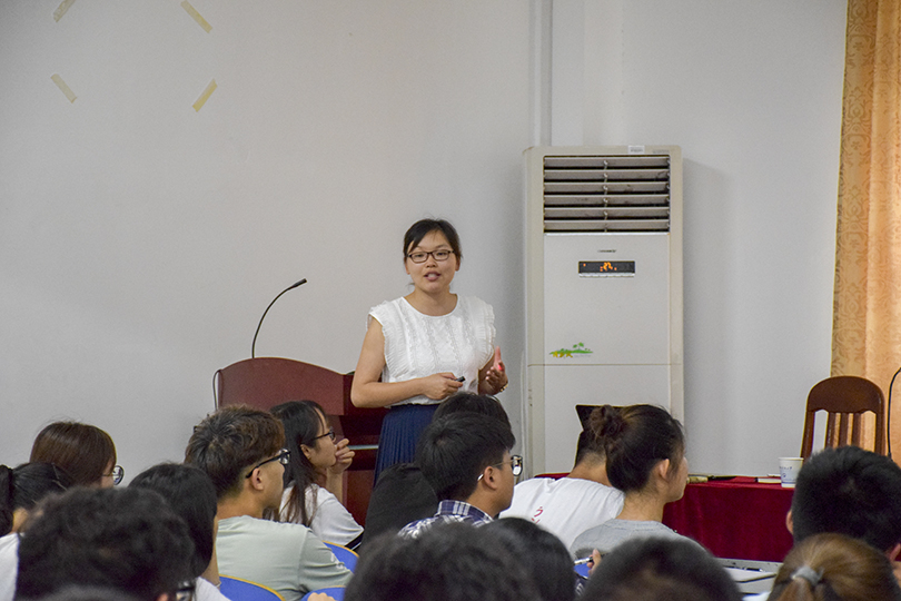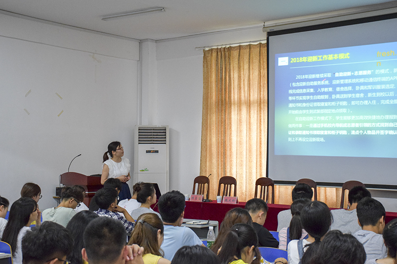 会议伊始,陈苗苗对魏庆龄进行了介绍,并表示希望助班及志愿者们能够积极配合魏老师做好18级新生迎新工作。随后,陈苗苗从迎新工作的基本模式、工作流程、迎新志愿者的工作职责及新生绿色通道入学手续的办理等方面作了详细解读。此外,18级迎新工作作为公司新学期的首要工作,陈苗苗对在座同学提出心理、纪律、形象、通讯四点基本要求,并希望大家都能秉承“四心”:热心、耐心、细心、责任心,去迎接新生。