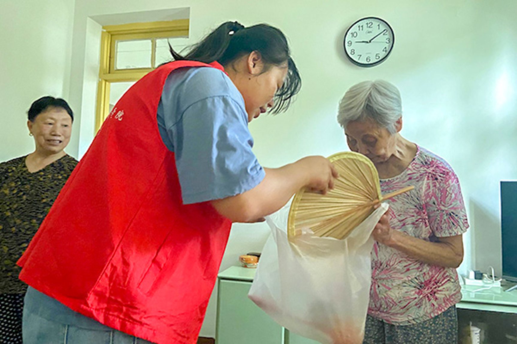 炎炎夏日,酷暑难耐,志愿者们的热情却丝毫没有减退。“罗奶奶,我们是yl23455永利的志愿者,我们今天来看您,天热了,您一定要注意身体。”志愿者吴鸿对独居老人罗奶奶说。上午,志愿者们分别走访了14户独居老人,陪伴老人们聊天,帮助老人们做家务,并送上了蒲扇等慰问品,为老人们带来一阵阵夏日的清凉。