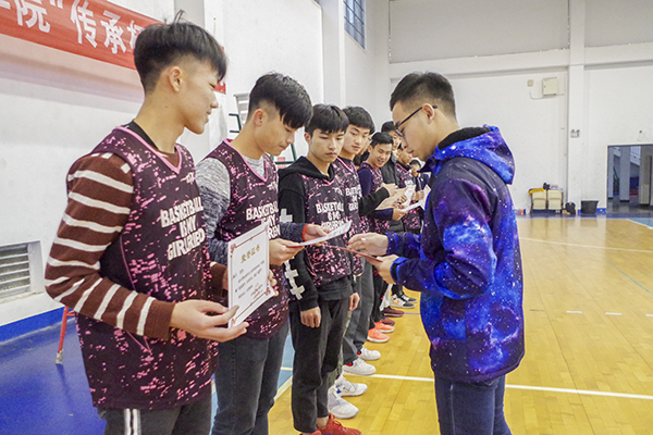 赛后,闭幕式正式开始。首先,由公司体育部部长王福强发表闭幕词。他指出今年举办的“传承杯”在继承传统的同时又增添了新意,从真正意义上做到了团结公司全体师生。随后,他代表公司团委员工会向运动员们表示热烈祝贺,并对裁判员及工作人员的辛勤付出表示由衷的感谢。他还希望运动员不仅要将敢拼敢赢的体育精神体现在赛场上,更要让它在生活中发光发热。紧接着,球员代表吴定伦发言。他说道:“‘传承杯’不仅能让我们与其他年级切磋球技,而且也让同学与老师之间建立了深厚的友谊。希望此次比赛能被一直延续,成为公司的特色。”最后,由袁枭淘宣布获奖名单,17级篮神队夺得冠军,16级少先队获得亚军,15级夕阳红队获得季军,老师研究生联队获得“优胜奖”,18级狼辰队获得“最佳组织奖”。此外,朱建军老师荣获“最有价值球员”。