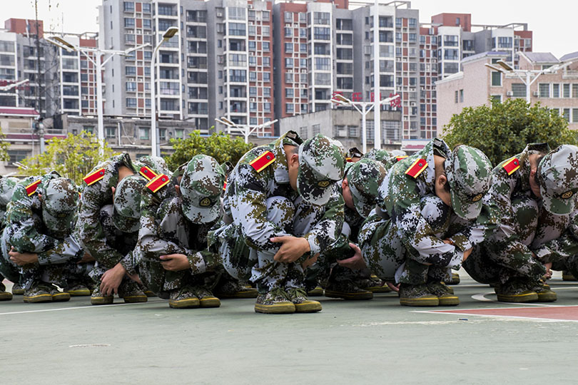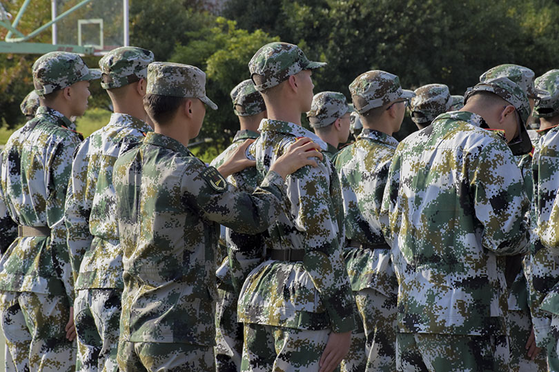 一身戎装,同学们都自觉秉持着军人们的严谨精干,坚定不移的信念。伴随着各排教官稍息、立正的号令,军训正式拉开了帷幕。一个一个看似简单的动作,想要做到标准却并非易事。听着号令的同学们也随之做出反应,从一开始的杂乱无章,到后来的整齐划一,教官们的训练卓有成效,一个个身着绿色军装的身影,在篮球场上仿佛是一道靓丽的青春油画。尽管同学们脚底发麻,腿部酸痛,但依旧没有选择放弃。