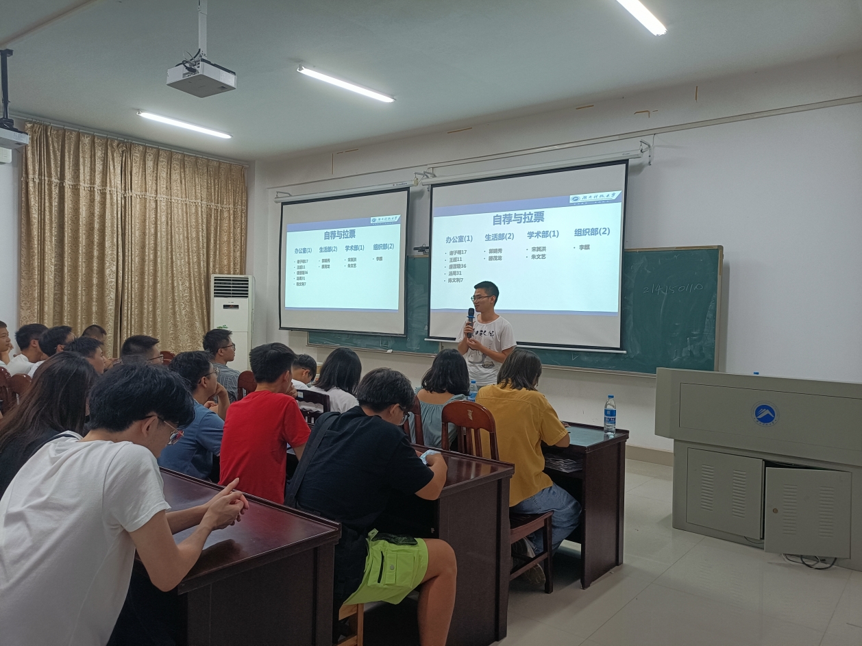 9月12日,公司研究生团委、研究生会换届选举大会在逸夫楼501教室召开,辅导员何庭钦、2020届研究生会主席、团委副书记以及各部长参会,全体2021级研究生参加。