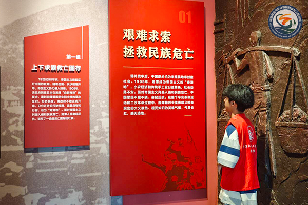 ▲志愿者观看红色事迹