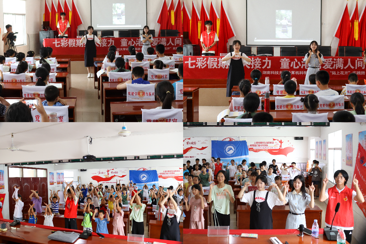 童心追梦,以课育人;童心筑梦 志在未来。童心对于青少年儿童的健康成长有着重要意义。课堂尾声,团县委志愿者带领小朋友们学习《勇气大爆发》手势舞。充满童趣的舞蹈极富感染力,激发着小朋友们的童心与勇气,他们边跳边唱,稚嫩的歌声承载着他们的梦想飞出了天窗,传遍金兴村的每个角落。至此14日的支教活动在歌声和笑声中圆满结束。