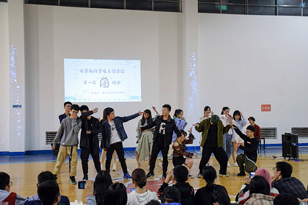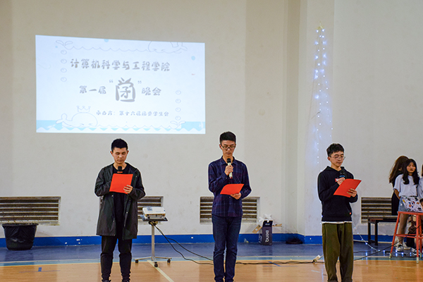 为本次晚会拉开序幕的是由16、17和18级年级总支带来的《夜空中最亮的星》,他们用歌声告诉大家,要永远年轻、永远好奇张望,不忘初心努力地追逐梦想。第三个出场的权益保障部带来了改编歌曲《北京东路的日子》,他们融入计算机的元素,用一个ppt讲述了这一年的经历,感动之余,亦让我们真切感受到他们为了员工权益所付出的努力。而后,宣传部用“新闻播报”的方式将女生节、考试作弊、国潮女生走秀三个场景还原得淋漓尽致。体育部和就业服务部则采用男扮女装反串的形式,别开生面地演绎了白雪公主的曲折爱情及罗密欧与朱丽叶的凄美故事,将本次晚会的气氛推至高潮。