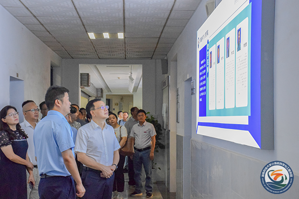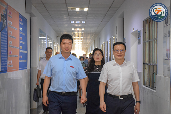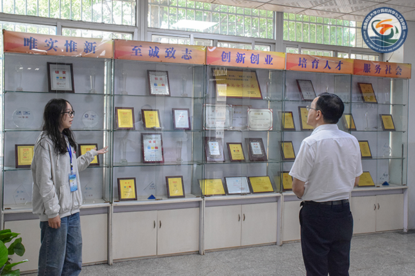 在梁伟的带领下,阳望平一行首先参观了公司发展历史展示板以及教学名师展示板,简要了解公司的发展历程以及团队面貌。阳望平对公司的深厚科研教学文化底蕴表示认可,并鼓励公司师生应再接再厉,不断进步。