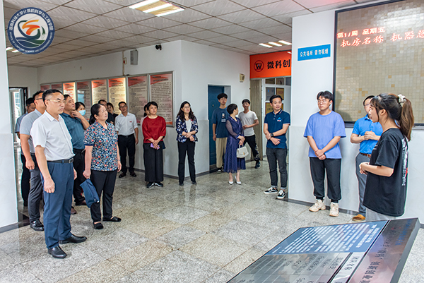 张慧一行人参观了微科基地中立德树人、唯实唯新、致诚致志等工作室,并与团队成员亲切交流。张慧体验了员工自主研发的解忧事务所、智能射击系统等项目,充分肯定了公司师生在创新创业工作方面取得的成果。