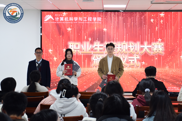 经过激烈的角逐,成长赛道和就业赛道各评选出一等奖一名、二等奖一名、三等奖一名、优胜奖两名。王方等老师为获奖选手颁发了证书,并与他们合影留念。