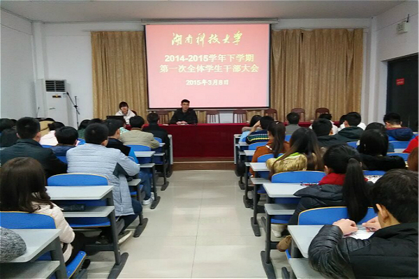 3月8日下午6点半,公司在逸夫楼108室召开2014-2015学年下学期第一次全体主要员工干部大会。公司党委副书记曾治国、学工办主任吴成义、辅导员老师易靓靓、肖爱军、曹睿卓出席,院团委员工会全体员工干部及各年级班长、团支书参加了本次会议。